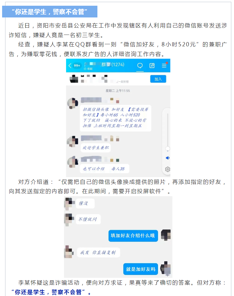 不少低齡學(xué)生群體聽信不法分子